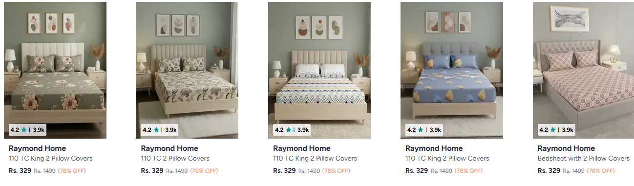 Raymond Home Bedsheet & Pillow Covers Starting @ ₹329 On Myntra.