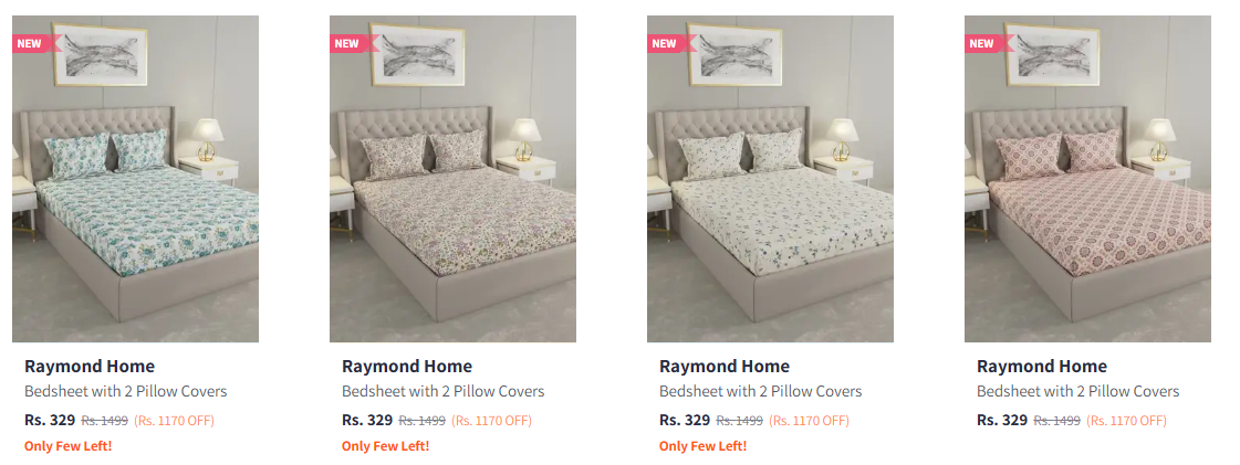 Raymond Home Bedsheets starting at ₹329 is available on Myntra.