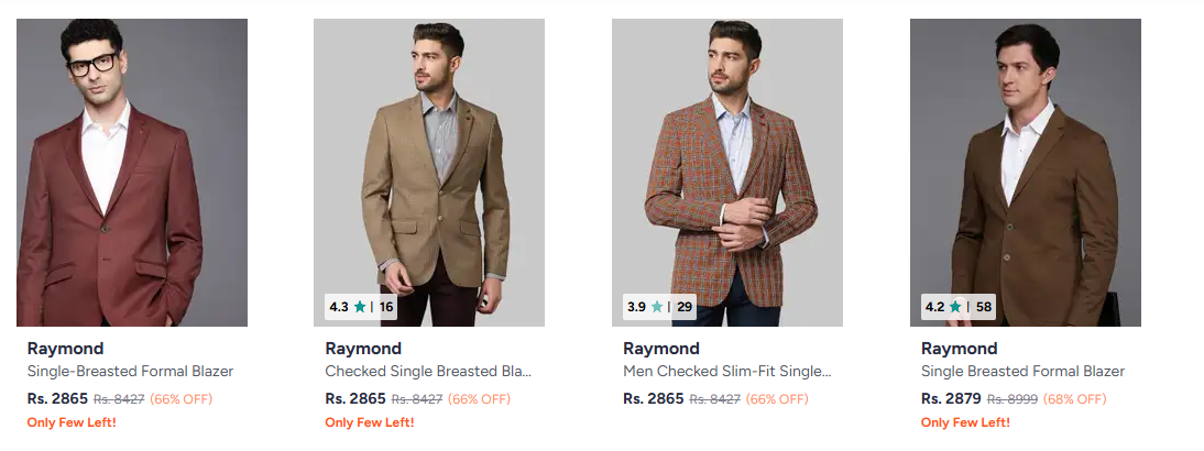 Raymond Men's Formal Blazers at minimum 60% Discount is available on Myntra.