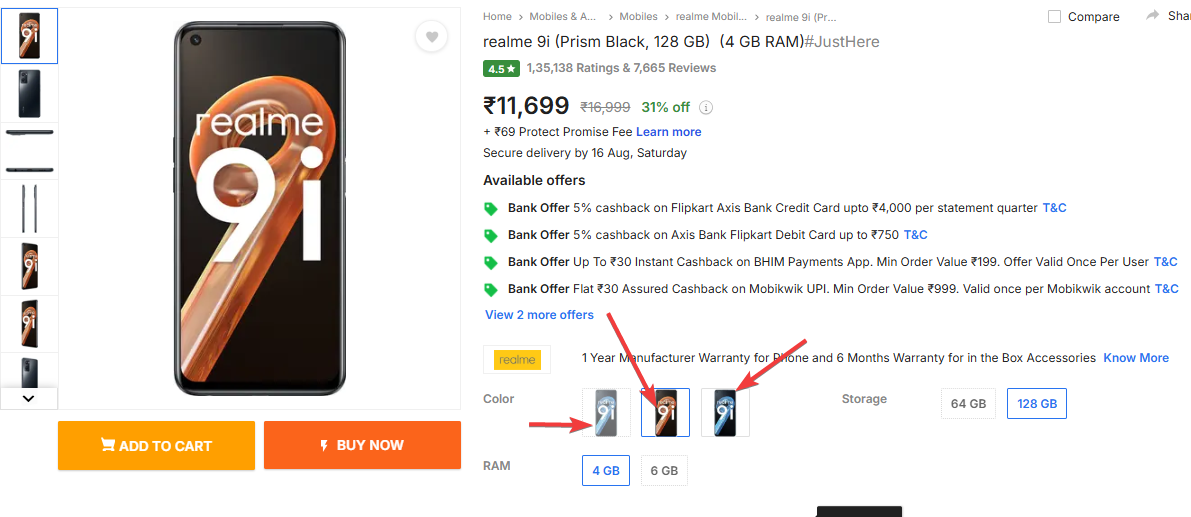 realme 9i (Prism Black, 128 GB) (4 GB RAM).