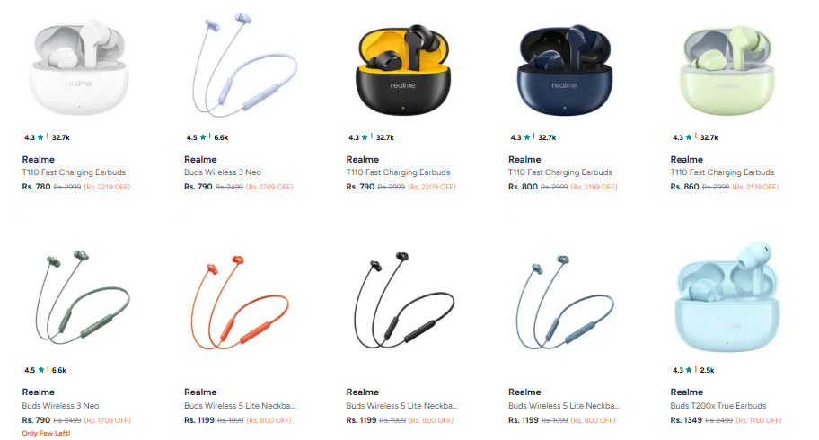 Realme Buds Buds & Neckband Minimum 70% Discount available online in India at an offer price of ₹780 (73% discount from MRP) on