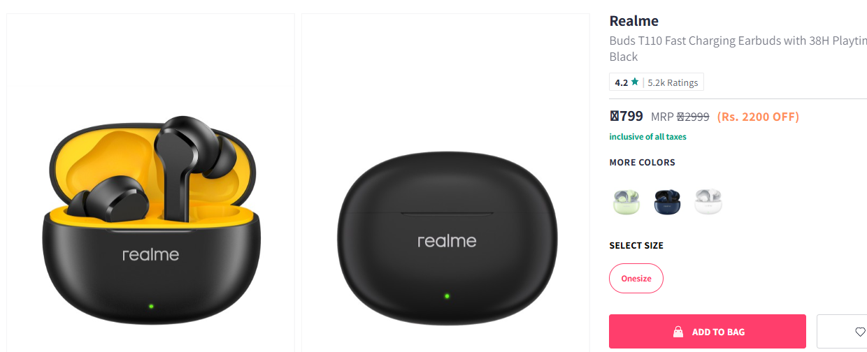 Realme Buds T110 Fast Charging Earbuds with 38H Playtime & AI ENC for Calls - Black