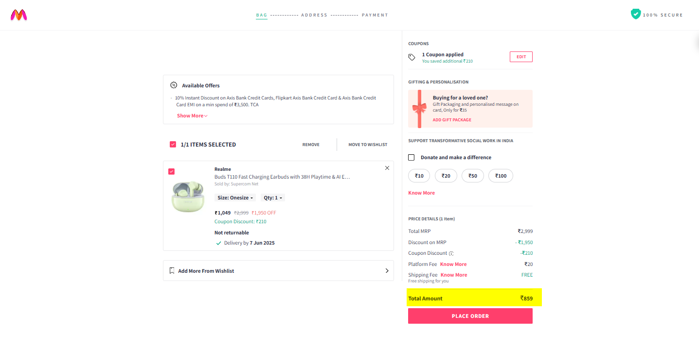 realme Buds T310 with 12.4mm Driver, 46dB ANC, Spatial Audio and upto 40 hours Playback B