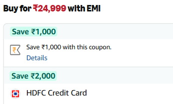 Incl.₹2000 off HDFC Bank CC + ₹1000 Coupon
