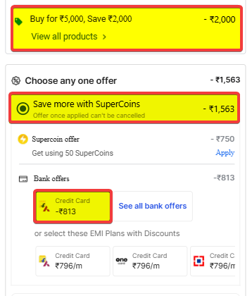 | (-) 💳 Use Flipkart Axis Bank Credit Card | (₹813) |