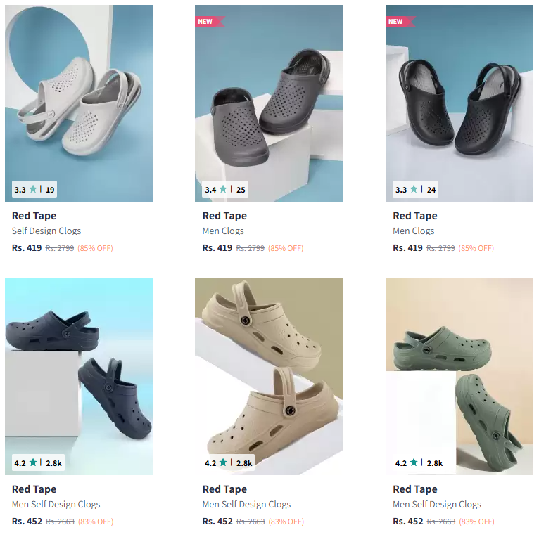 Red Tape Clogs @ Minimum 80% Discount, Available on Myntra.