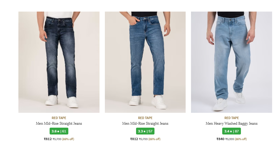 Red Tape Men Jeans Minimum 80% Discount