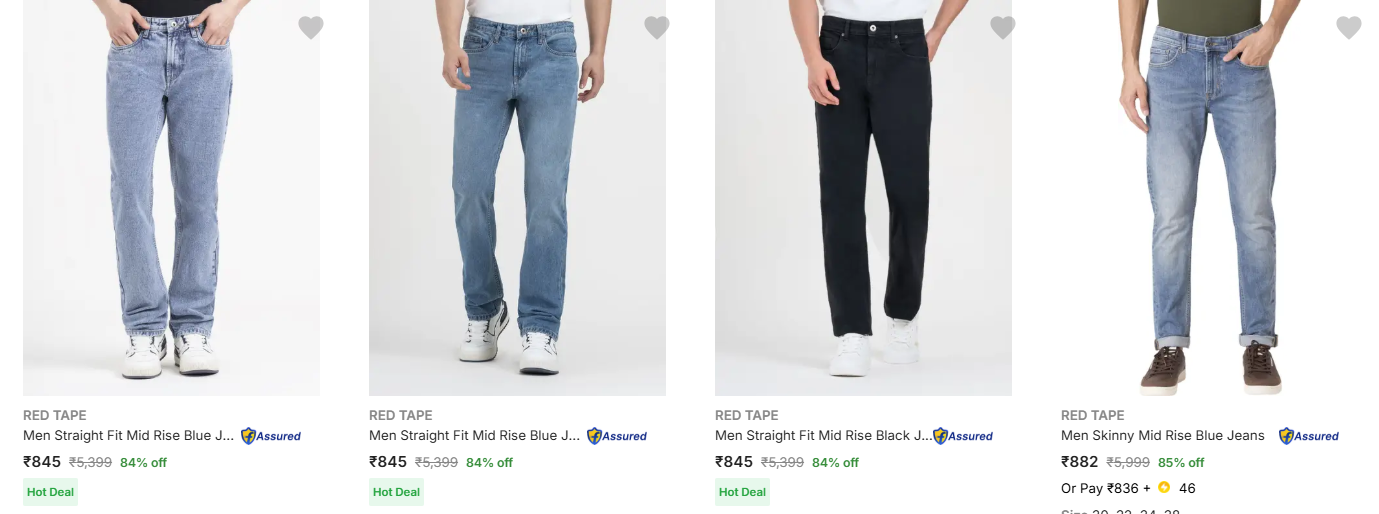 Red Tape Men's Jeans upto 85% Discount is available on Flipkart.