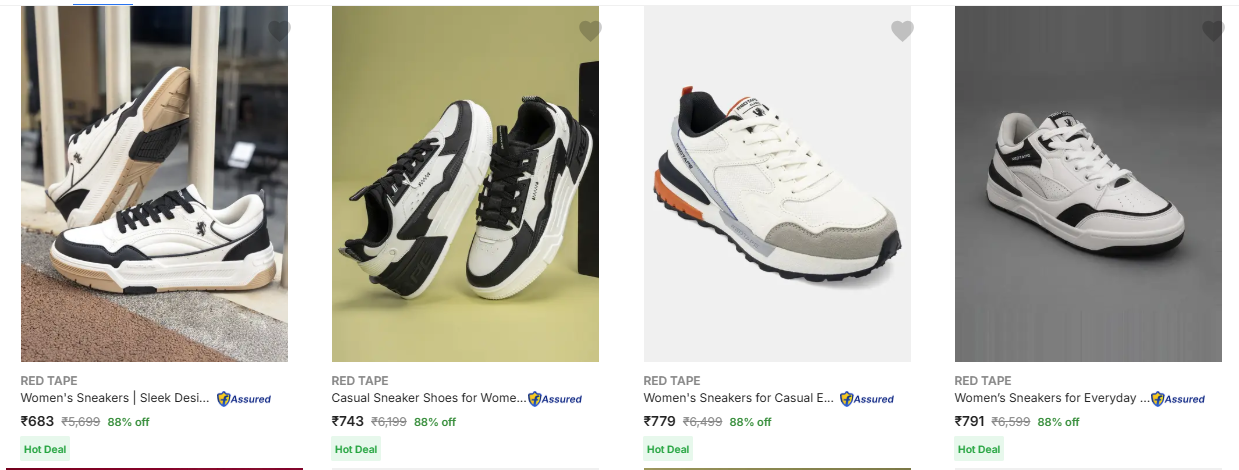 Red Tape Women's Sneakers at 88% Discount is available at Flipkart