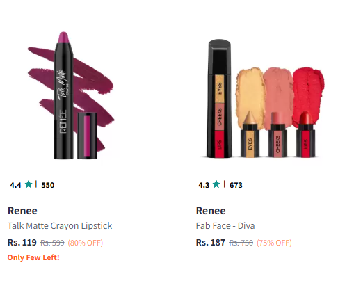 Renee Beauty Products @ Up to 80% Discount, Available on Myntra.