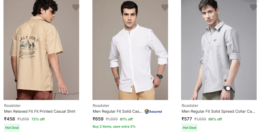 Roadster Men Fashion Shirt Minimum 70% Discount