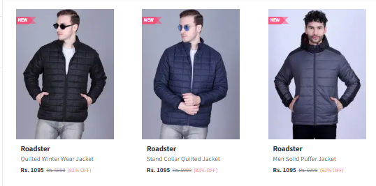 Roadster Men's Jackets at Minimum 80% Discount at Myntra.
