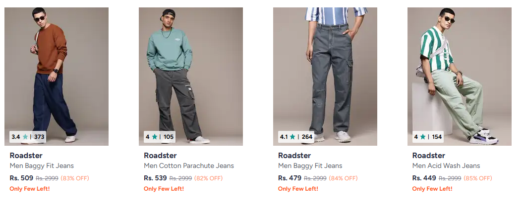 Roadster Men's Jeans at minimum 80% Discount is available @ Myntra