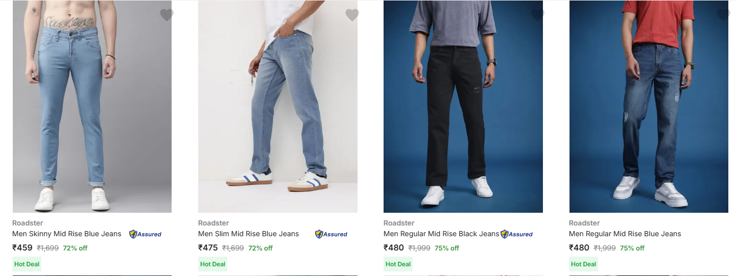 Roadster Men's Jeans upto 75% Discount is availabl;e on Flipkart.