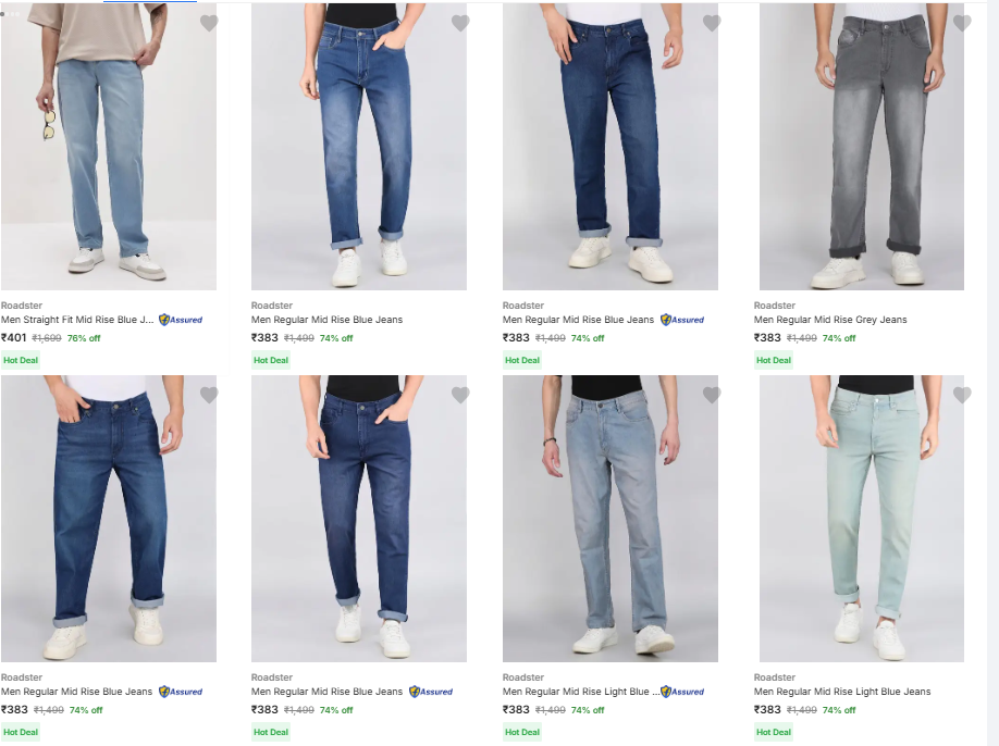 Roadster mens jeans upto 76% discount on amazon
