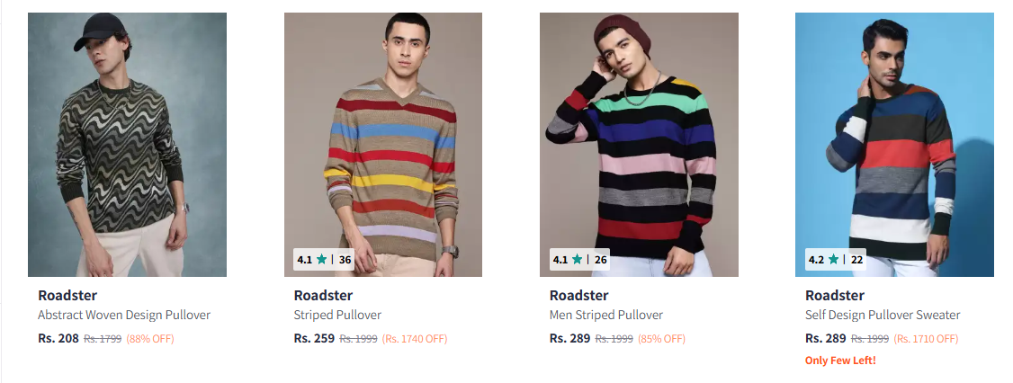 Roadster Men's Sweaters upto 88% Discount is available on Myntra.