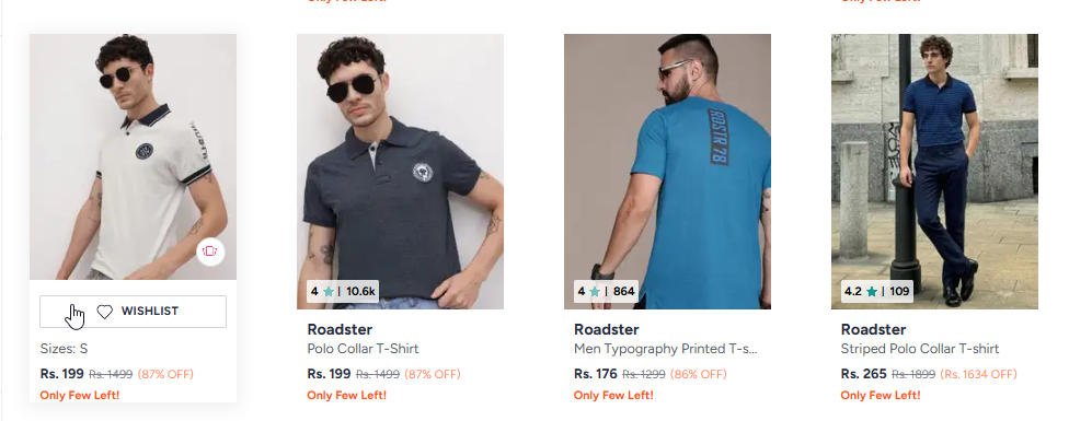 Roadster Tshirt Starting @ ₹169