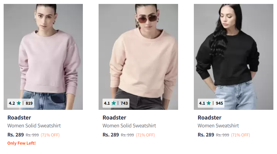 Roadster Women Sweatshirt Starting @ ₹289