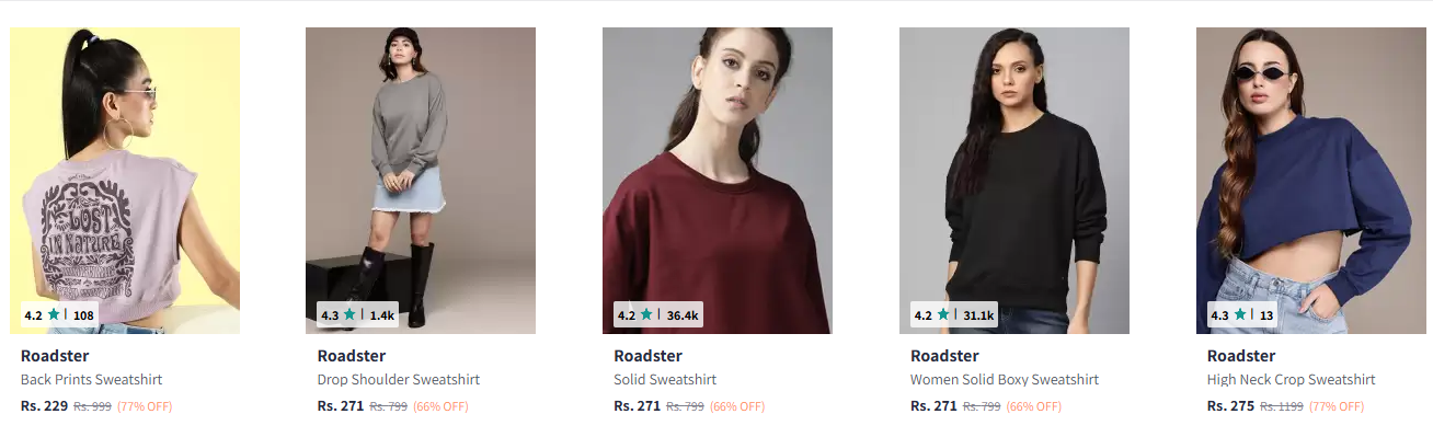 Roadster Women Sweatshirts Starting @ ₹229