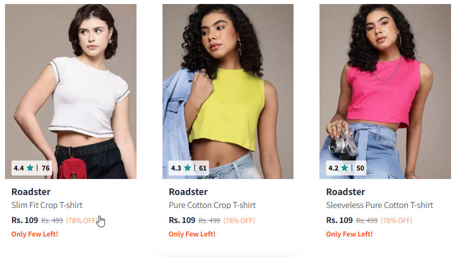 Roadster Women T-shirt Starting @ ₹109