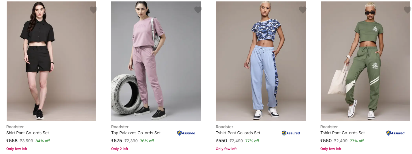 Roadster Women's Co-Ords upto 84% Discount is available on Flipkart.