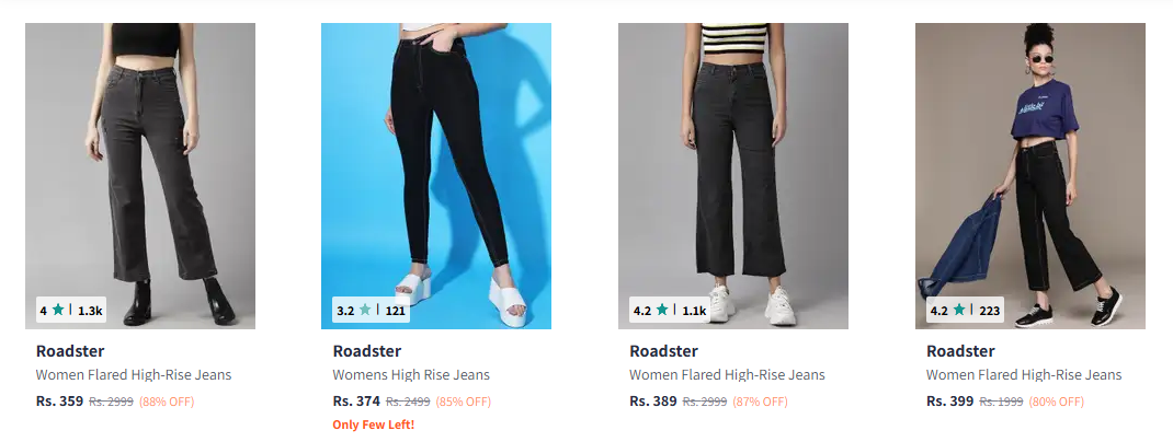 Roadster Women's Jeans upto 88% Discount is available on Myntra.