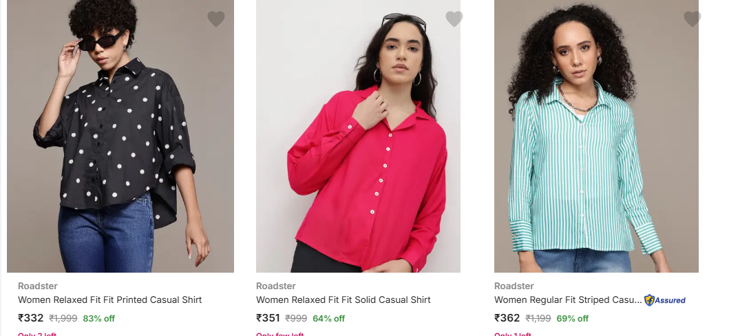 Roadster womens shirt upto 80% off on flipkart