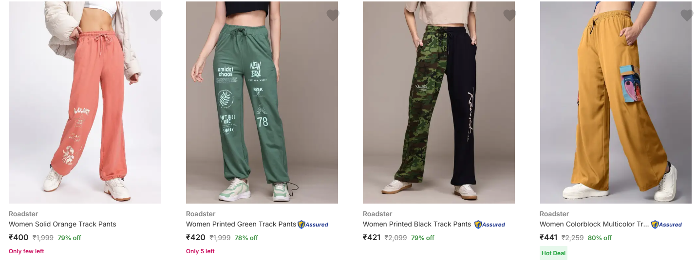 Roadster Women's Track Pants upto 80% Discount available online in India on Flipkart. This deal was updated by @radhika on 26th October, 2025 at 3:48 PM.