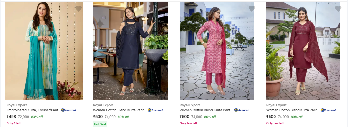 Royal Export Women's Ethnic Sets at minimum 71% Discount available online in India on Flipkart. This deal was updated by @sudha on 30th March, 2026 at 4:28 PM.