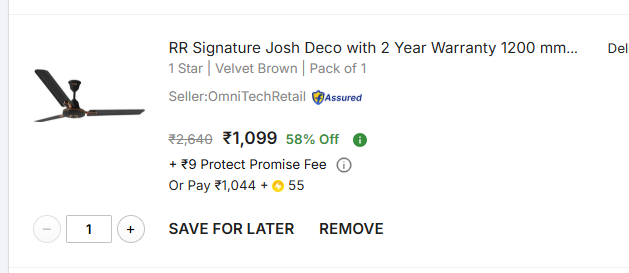 RR Signature Josh Deco with 2 Year Warranty 1200 mm Ceiling Fan (1 Star | Velvet Brown | Pack of 1)