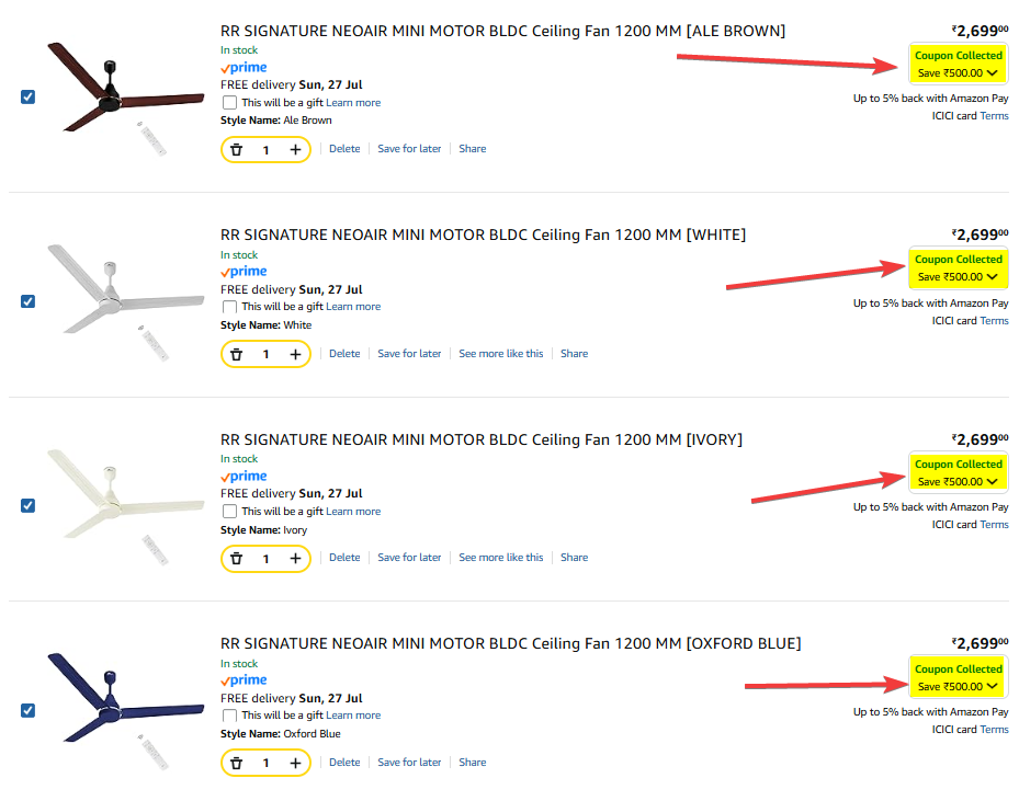 RR Signature NeoAir Mini Motor BLDC Ceiling Fan 1200mm, available on Amazon.