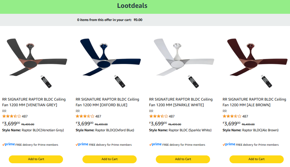 RR Signature Raptor BLDC Ceiling Fan 1200mm, available on Amazon.