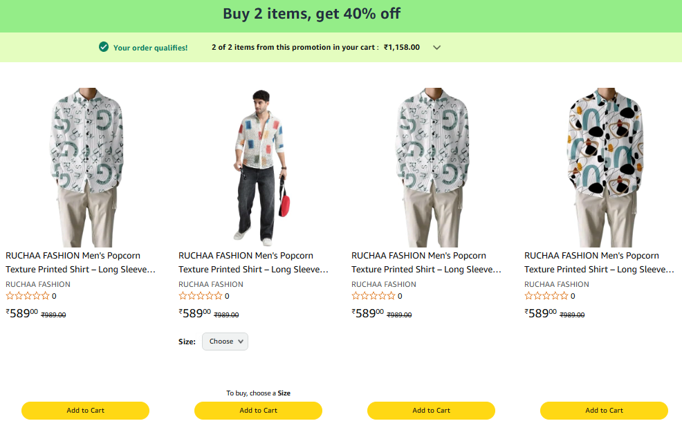 RUCHAA FASHION Offer: Buy any 2 items for an extra 40% discount.