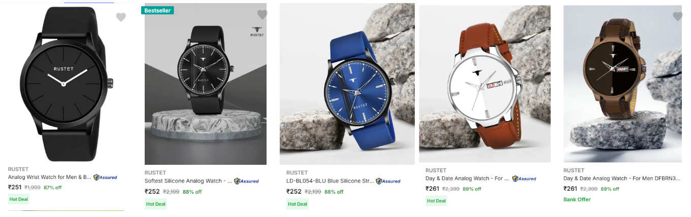 Rustet Men's Watches upto 89% Discount is available on Flipkart.