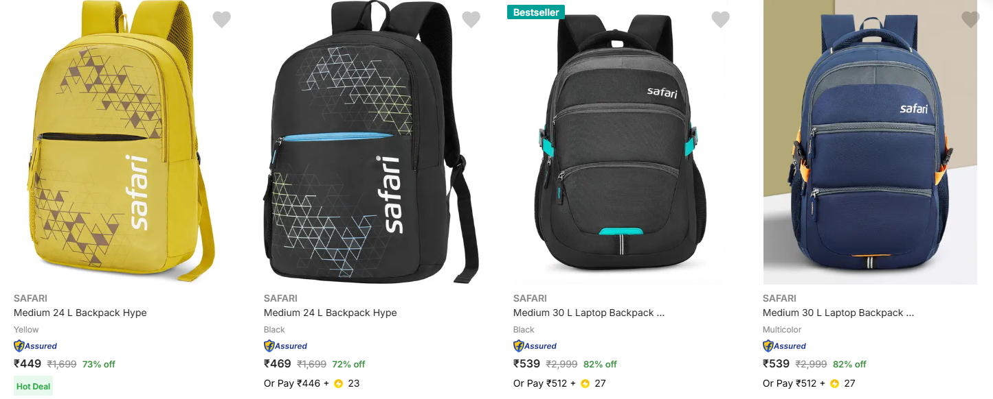 Safari Backpack upto 82% Discount is available on Flipkart.