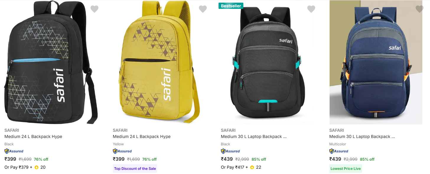 Safari Backpacks upto 85% Discount | Starting at ₹399 is available on Flipkart.