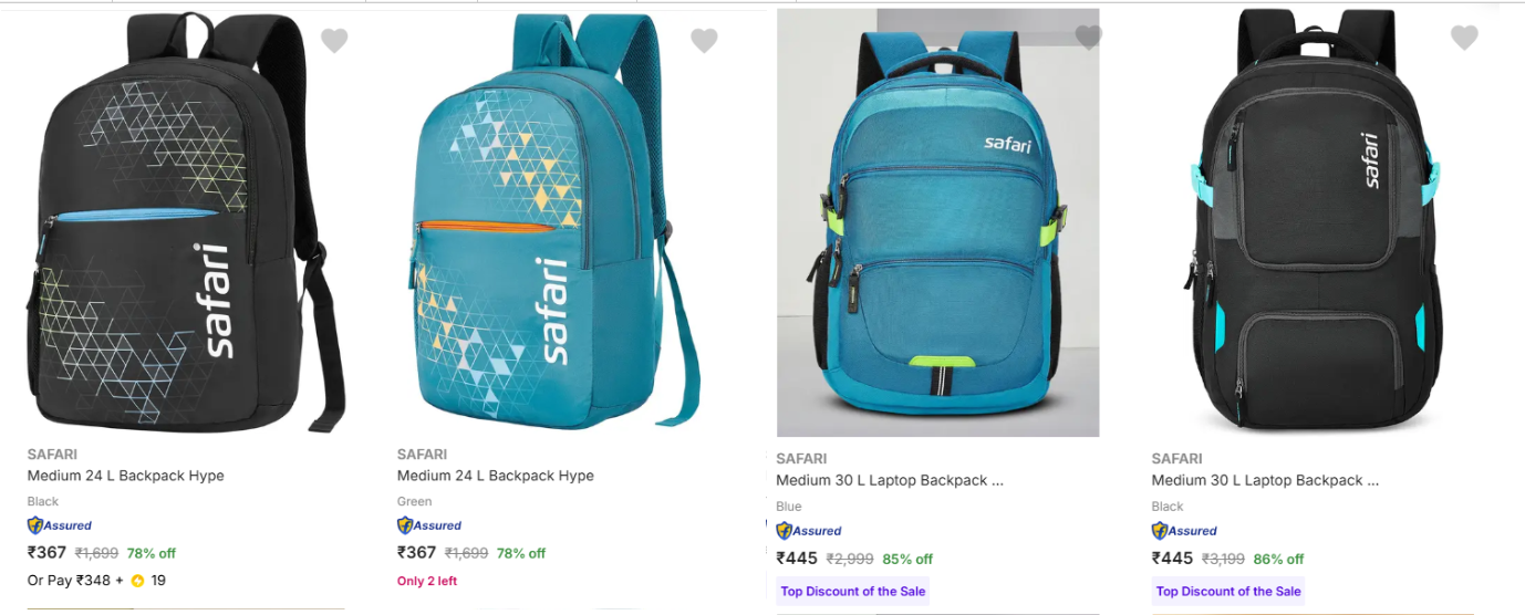 Safari Backpacks upto 86% Discount | Starting at ₹367 is available on Flipkart.