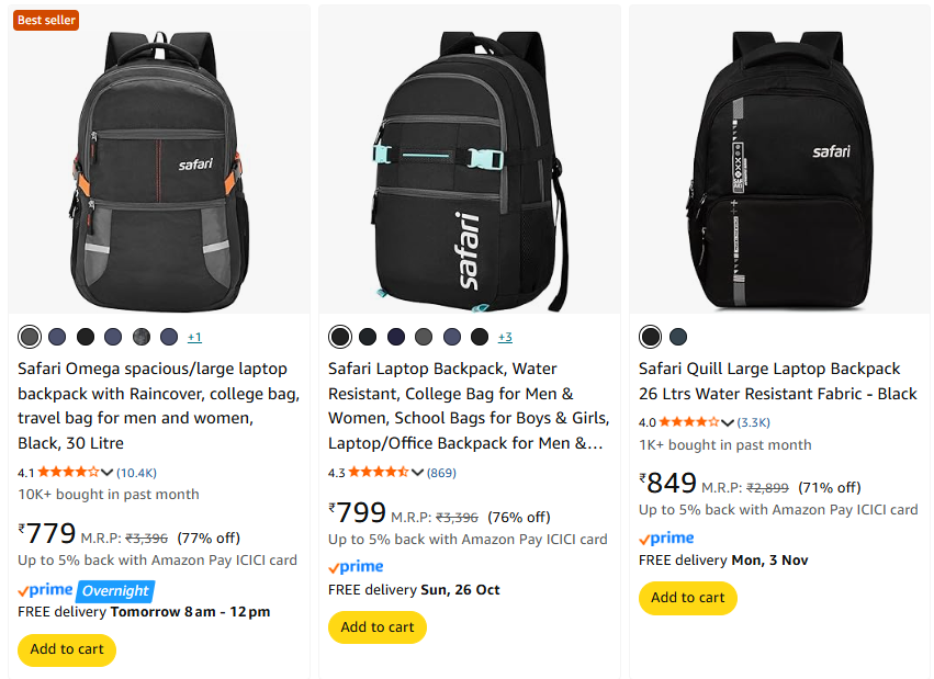 Safari Laptop Backpacks upto 77% Discount is available on Amazon.