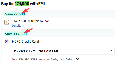 Incl. ₹17500 Off HDFC Bank CC EMI +₹ 7500 Coupon