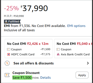 Incl. ₹3000 Off Axis CC + ₹1000 Off with Coupon