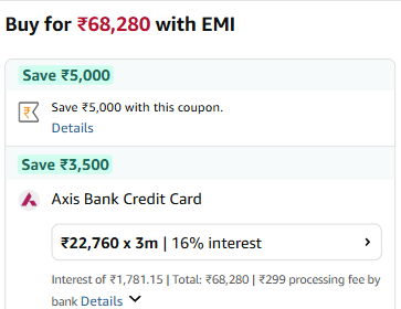Incl.₹2750 off HDFC Bank CC + ₹2000 Coupon