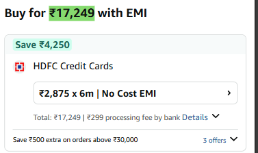 incl. ₹2500 off On HDFC Bank CC+ ₹1000 Coupon