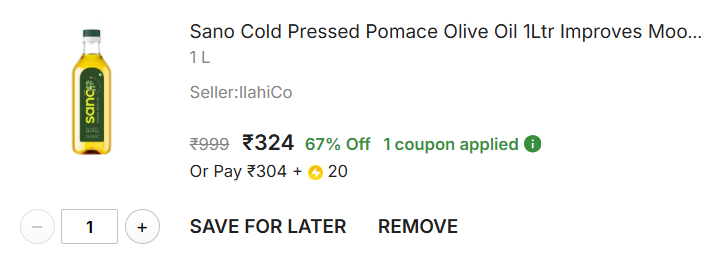 Sano Cold Pressed Pomace Olive Oil 1Ltr Improves Mood and Mental Health Olive Oil PET Bottle (1 L).