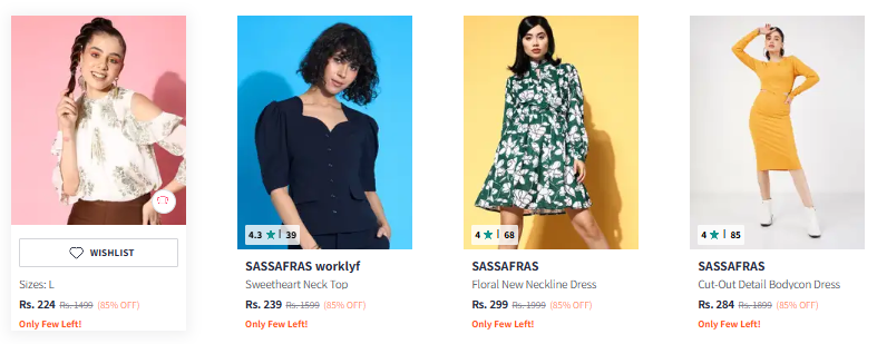 SASSAFRAS Women's Clothing Upto 85% Off available on Myntra