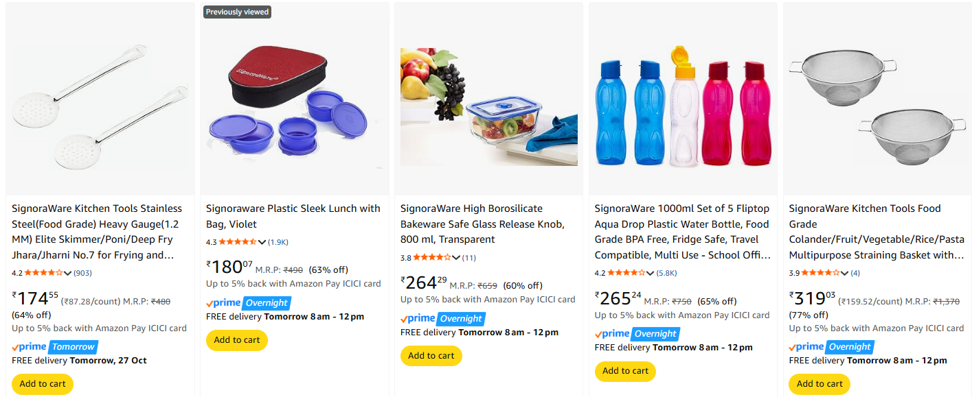 Signoraware Household Products upto 77% Discount is available on Amazon.
