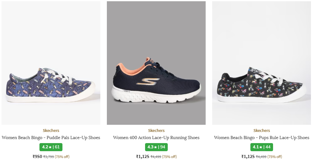SKECHERS Women's Footwear @ Up to 75% Discount available online in India (75% discount from MRP) on Ajio. Discount: 75%. This deal was updated by @suresh on 30th January, 2026 at 4:54 PM.