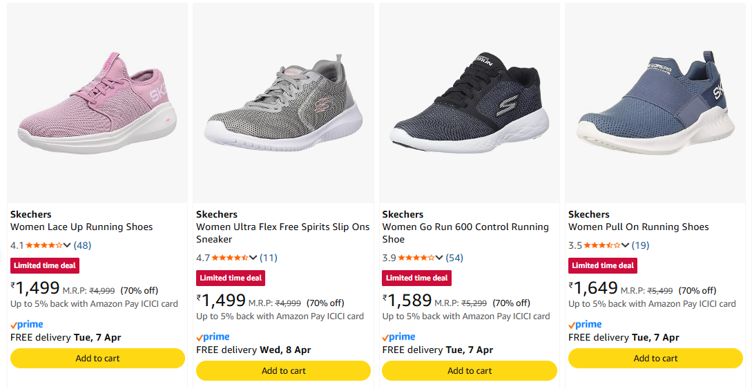 Skechers Women's Shoes at minimum 70% Discount is available on Amazon.