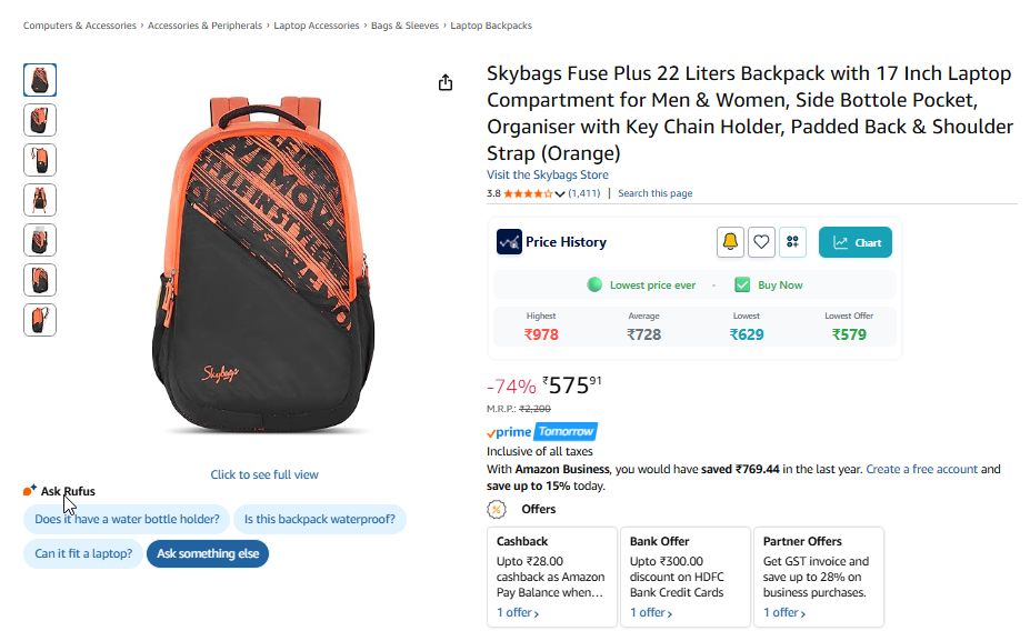 Skybags Fuse Plus 22 Liters Backpack with 17 Inch Laptop Compartment for Men & Women, Side Bottole Pocket, Organiser with Key Chain Holder, Padded Back & Shoulder Strap (Orange)