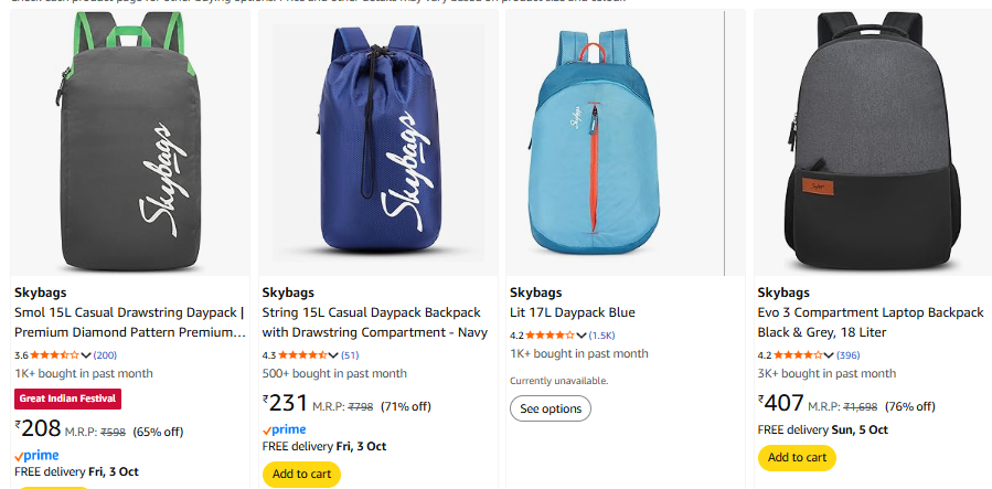 Skybags Backpack Starting @ ₹208 Is Available On Amazon.