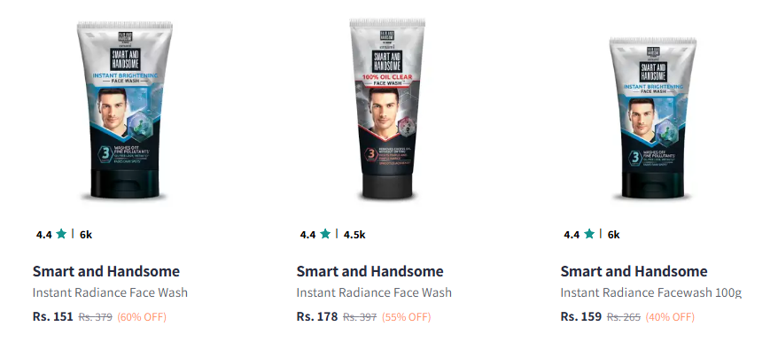 Smart And Handsome Face Wash, Instant Brightening, Instant Freshness, 150g